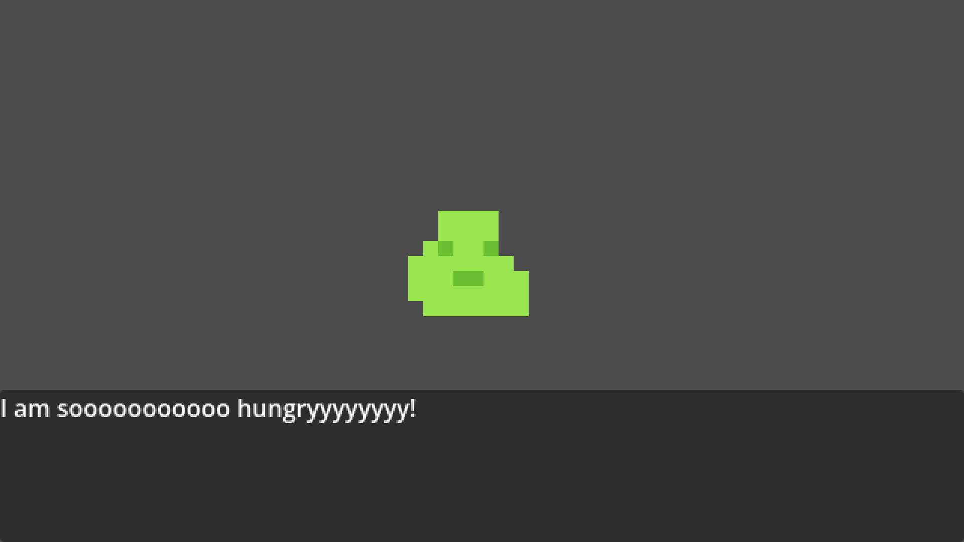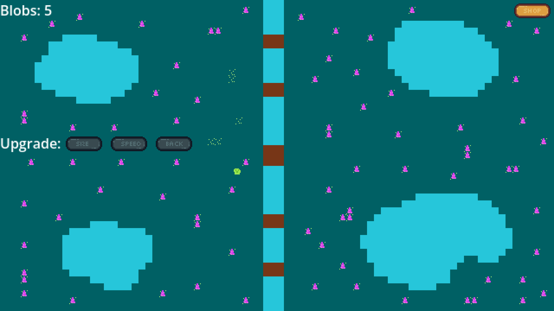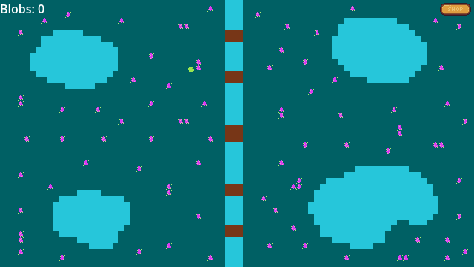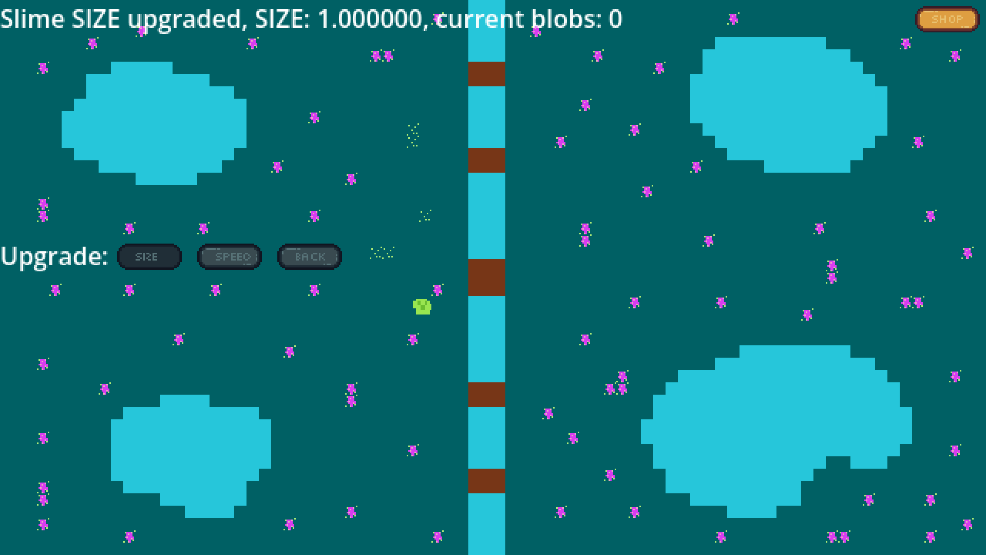 You must grow grow grow. Consume the whole world! after the slime reaches a certain size you win the game, blobs respawn after 2 seconds when all current blobs are consumed. at the end game will freeze, you must close it manually. once you start the game you cant quite (didnt have time to implement so close it manually). only tested linux so far not sure if the .exe is working